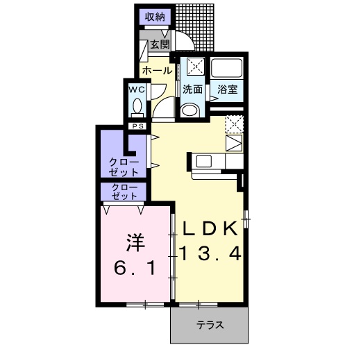 1LDK(洋室 6.1畳 LDK 13.4畳 ) |