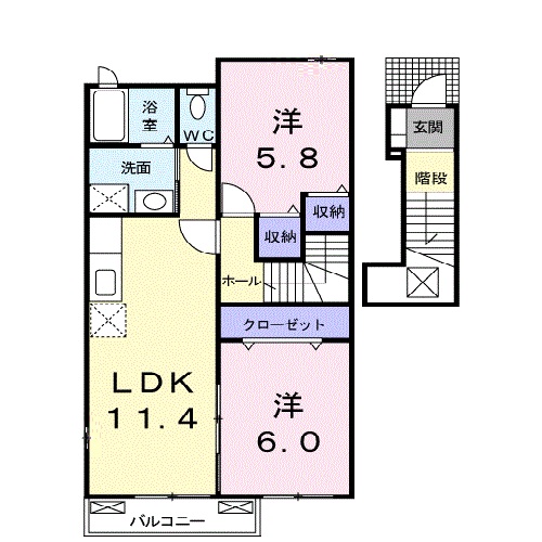 2LDK(洋室 6畳 洋室 5.8畳 LDK 11.4畳 ) |