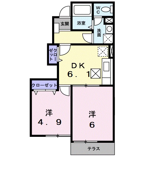 2DK(洋室 6畳 洋室 4.9畳 DK 6畳 ) |