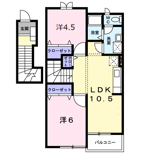 2DK(洋室 4.5畳 洋室 6畳 DK 10.5畳 ) |