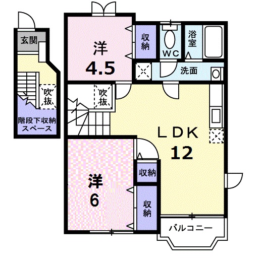2DK(洋室 4.5畳 洋室 6畳 LDK 12畳 ) |