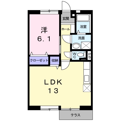 1LDK(洋室 6.1畳 LDK 13畳 ) |