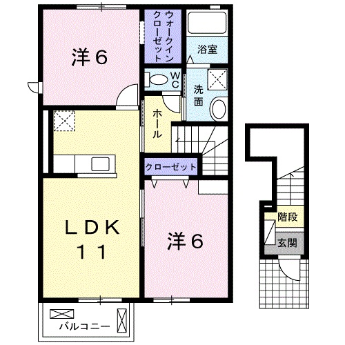 2LDK(洋室 6畳 LDK 11畳 ) |