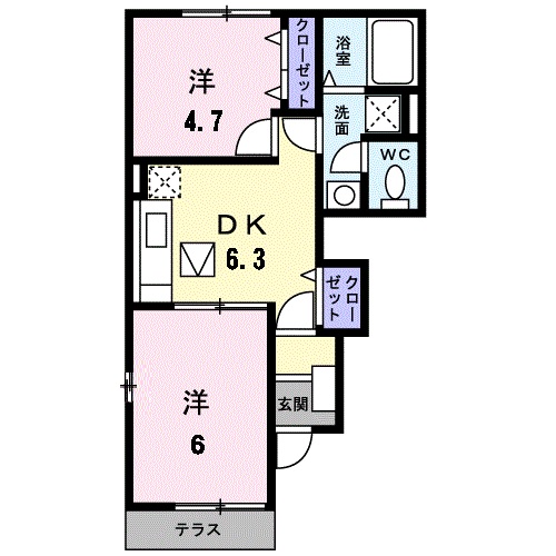 2DK(洋室 6畳 洋室 4.7畳 DK 6.3畳 ) |