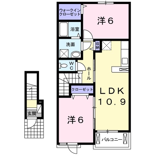 2LDK(洋室 6畳 洋室 6畳 LDK 10.9畳 ) |