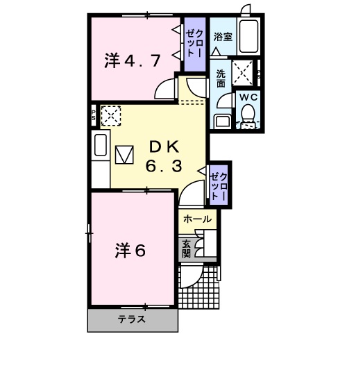 2DK(洋室 6畳 洋室 4.7畳 DK 6.3畳 ) |