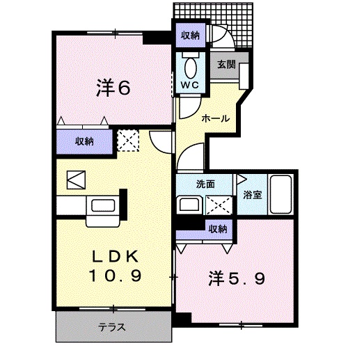 2LDK(洋室 6畳 洋室 5.9畳 LDK 10.9畳 ) |