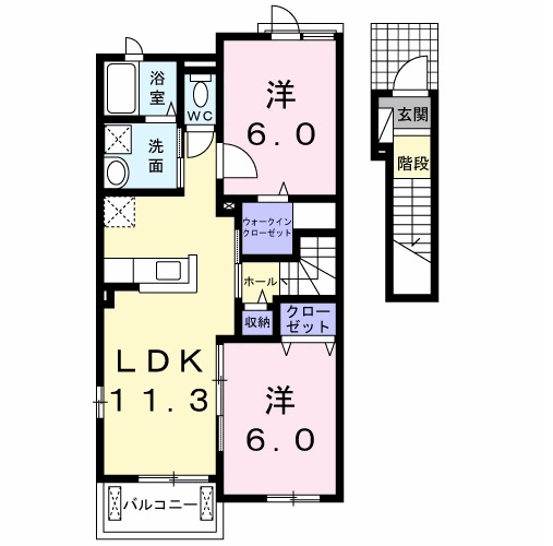 2LDK(洋室 6畳 洋室 6.0畳 LDK 11.3畳 ) |